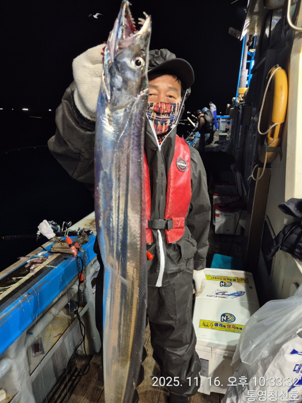 바다의전설 부평25통영 갈치 조황 소식 올립니다.7월 31일 자정만 넘어서면 드디어 갈치 시즌입니다.31일 목요일 16분의 조사님 모시고 통영 고고씽...12시 30분 통영 도착 맛난 점심식사후. 삼덕항 도착 승선 명부쓰고청신호 후다닥 승선. 14시 정각 출발~~~청신호도 이젠 대포가~~~~~~~~~~뽕뽀인트 도착 하여 채비 준비 하는데...해경에서 연락옴24시 이전에 드론으로 갈치 잡는것 촬영 한다고 ㅋㅋ하여 우리는 24이전가지 고등어로 쿨러 채우기로 하여 요이땅해서줄줄이 고등어 싸이즈도 죽입니다.이제 24시간 지나면서 전원 갈치대로 교체.....얼마나 잡았을가요? 또 갈치 싸이즈는 어떨거 갖나요?네네 속된 이야기로 먹을만큼 잡았습니다.물론 갈치싸이즈도 3지급으로 풀치도 없어요~간간히 4지.5지급도 보이네요~오늘도 함께 해주신 분들에게 머리 숙여 감사 드립니다. ====== 부평25시 예약안내 ======안녕하세요! 부평25시입니다. 먼길 찾아주시는 조사님들을 위해 항상 최선을 다하겠습니다. ■ 예약문의 : 010-4345-8822■ 오시는길 : 인천 부평구 무네미로 433번지■ 부평25시 실시간 예약 바로가기 : http://bp25.sunsang24.com/ ■ 계좌안내 : 농협 / 302-1432-0753-81 / 박요상
